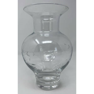 Clear Frosted Floral Pattern Defect at Top Vase 9" Tall x 4 3/4" Wide at Top Heavey on the Bottom