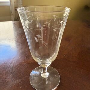Set of 8 from the Heritage Collection. Clear crystal stemware, hand blown and decorated with etched Heritage pattern. Perfect for all occasions. These contemporary styled glasses stand at 6" all with a diameter oof 3 1/2". A beautiful addition to any table setting. No chips or signs of use. Care instructions recommend hand washing only,