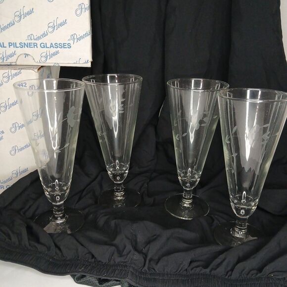Princess House Heritage #442 Crystal Pilsner Drinking Glasses Set of 4 Barware