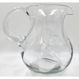 Princess House Heritage Clear Glass Pitcher Etched Grapes 2 Qt Water Juice USA