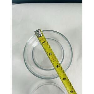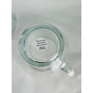 This Princess House Heritage creamer and sugar set is a vintage licensed reproduction made of clear crystal with a floral etched glass design. The set includes a round creamer and sugar bowl with lid from the 1970s Princess House Heritage collection, featuring the brand's signature backstamp sticker.