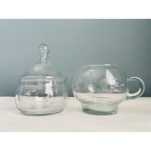 Princess House Heritage Creamer & Sugar Set Lid Vintage Etched Glass Floral