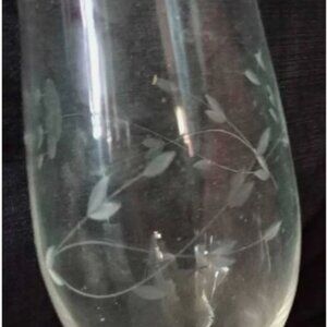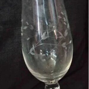 This vintage Princess House Heritage clear footed vase will add a touch of elegance to your decor. Made of crystal, this vintage 10" vase features a ruffled top and exquisite etching.