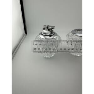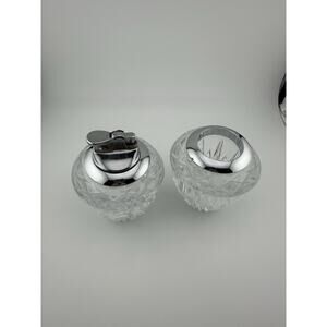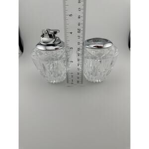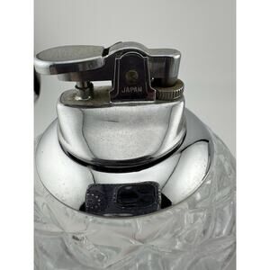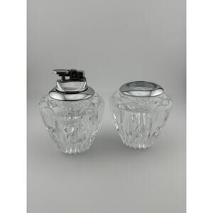 A beautiful set of heavy, 24% Lead Crystal from Japan cigarette lighter and extra holder for matches etc. I think that the second piece could also be for a lighter, but the lighter part is missing. It could be used to hold toothpicks etc. They were manufactured in the 1980s. They measure 4" tall w/ lighter, 3" without. They are 3.25" wide at the center. They weigh 2.9 lbs. They are in excellent condition with no surface wear or chips. The lighter is marked Japan.