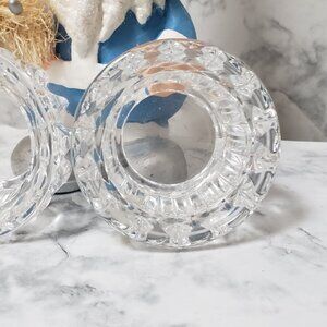 Princess House MCM Vintage Set 2 Clear Crystal Faceted Tea Light Candle Holders