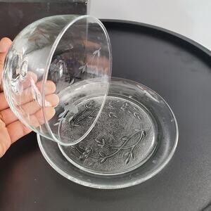 Princess House Vintage Heritage Pattern Small Glass Etched Plate & Dome Cover