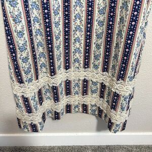 Princess Kaiulani Hawaiian Maxi Floral Dress L 16 Short Sleeves Lace Hem Boho