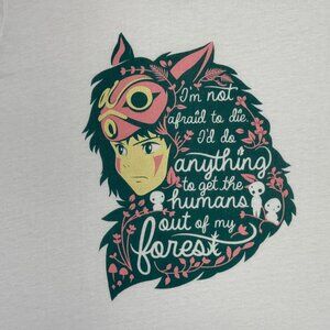Princess Mononoke T Shirt Womens Large White Pink Ringer Tee Anime Graphic L