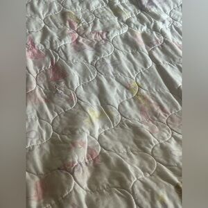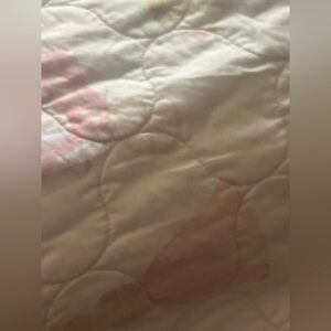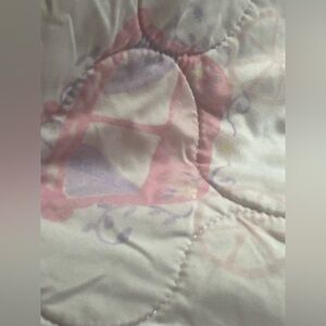 Enhance your bedroom with this princess theme patterned quilt set. The soft pink and white colors add a touch of sophistication to any decor.