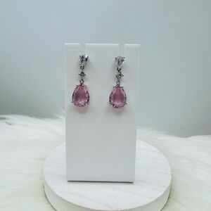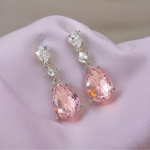 Very feminine, Dainty beautiful Pink Cubic Zirconia Tear Drop earrings