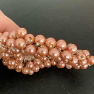 Princess Pink Pearl Hair Tie – Rosy Beaded Clusters on Golden Stretch Band