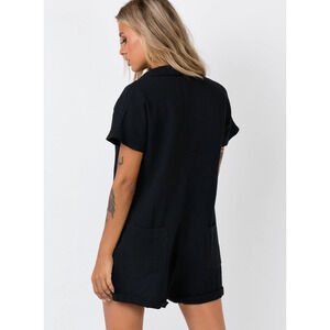 Princess Polly Black Deep V-Neck Collared Short Sleeve Button Up Romper