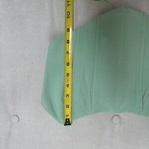 Green strapless corset top. Ties up the back. color is a melon green and very subtle. Excellent condition. measurements are shown in the photos and it was worn once, Price reflect not new but also in good condition.