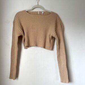 Princess Polly Alivia Beige Cropped Knit Sweater S/M