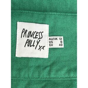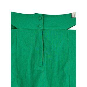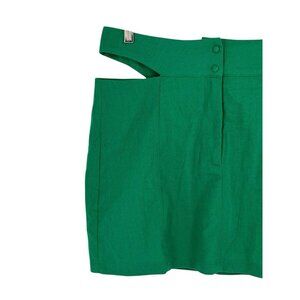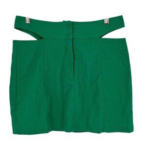 Princess Polly Amara Cut Out Mini Skirt Green Linen Blend Button Zip Women's Size 8