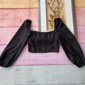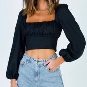 Princess Polly Ariah Black Long Sleeve Gathered Bust Fitted Crop Top, women's size 4US