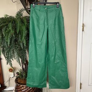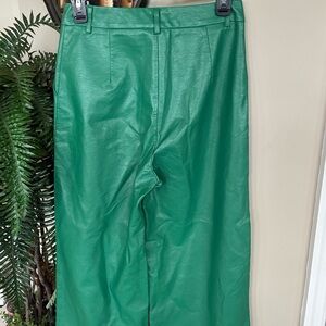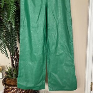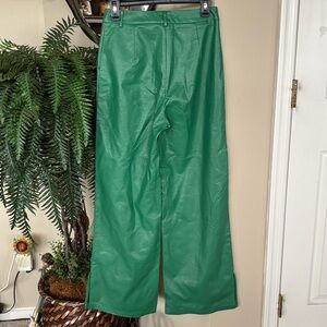 Princess Polly Ashlea Faux Leather Pants Green Mid Rise Light Flare Trousers