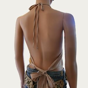 Princess Polly BEIGE/Rose Asymmetrical Backless Crop Top NWT