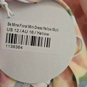 Princess Polly Be Mine floral mini dress, size US 12 / AU 16 with a pastel floral pattern. It has a fitted silhouette, a sweetheart neckline, and thin shoulder straps. 97% polyester 3% spandex. Gathered bust, lined and wired cups, zips on back. Beautiful and feminine pastel floral print.