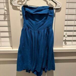 Linen material, interior pockets, invisible zipper fastening at the side, gathered waist