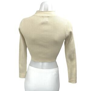 Princess Polly Beige Long Sleeve Ribbed Half Zip High Neck Crop Sweater Top S/M