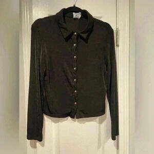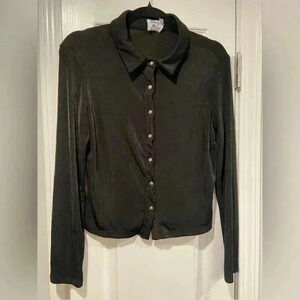 Princess Polly Black Stretchy Snap Front Long Sleeve Collared Top Size 12