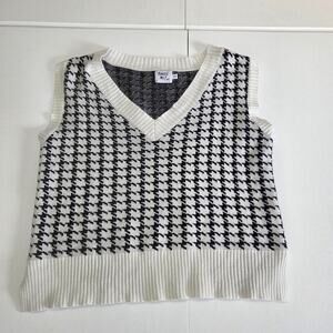 Princess Polly Black White Baggy Sweater Vest Woman's Size S/M