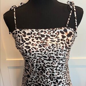Embrace your wild side with this chic leopard print dress. Perfect for any occasion, this dress features stylish spaghetti straps for a modern look.