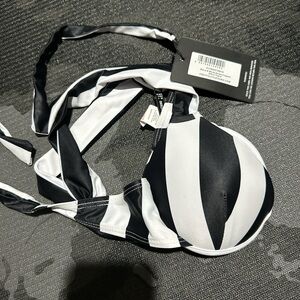 Princess Polly Black and White Striped Bikini Top