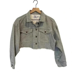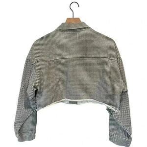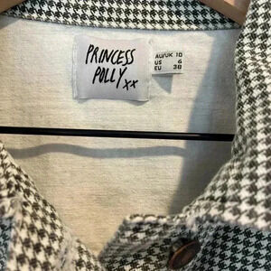 Princess Polly Black/White Houndstooth Cropped Buttoned Jacket, Raw Hem, Sz 6