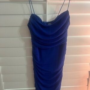 Sold out online! Fully lined mini dress with stretchy mesh overlay and ruching throughout. Very flattering! Worn once.