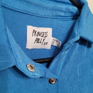 Princess Polly Blue Button Front Long Sleeve Collared Mini Dress Sz 4