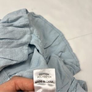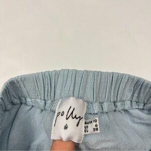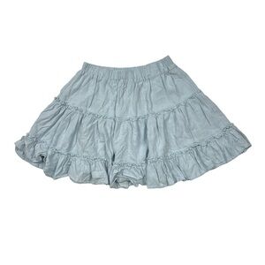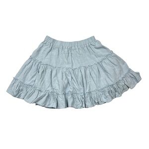 Princess Polly Blue Elastic Waist Addison Mae Tiered Mini Skirt. Pull on. A-line. Fit and flare. Ruffle detail. Cotton polyester blend. Size 6. Waist: 11" across. Length: 14.5". (21)
