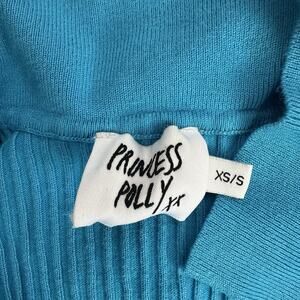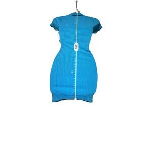 This stunning blue ribbed dress from Princess Polly features a chic collared V-neckline and cuffed short sleeves, perfect for casual or work settings. The bodycon style hugs your figure beautifully. Size xs/s