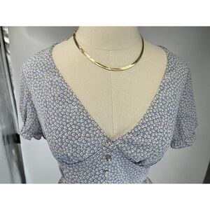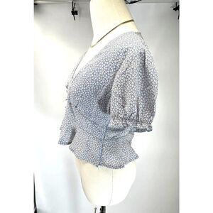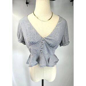 Princess Polly Blue Floral Crop Top Size 4 Small Puff Sleeve Button Peplum Jamia