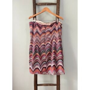 Keywords: Princess Polly, mini skirt, bodycon skirt, chevron print, party skirt, fitted skirt, size 12, orange skirt, purple skirt, geometric print, lined skirt, womens skirt, casual skirt, going out skirt