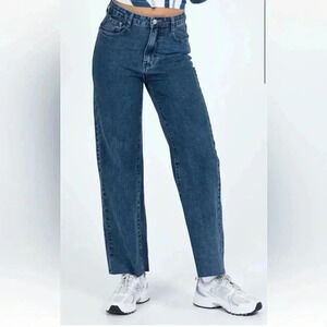 Princess Polly Boundless Denim Cut Raw Hem Blue Jeans Women’s Size 8 Classic