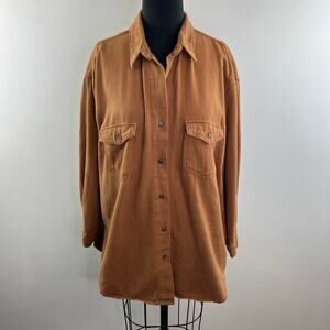 Princess Polly Brown Button-Down Shirt Top Cotton Pockets Long Sleeves Size 6