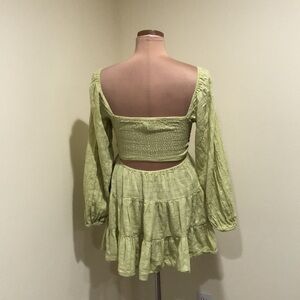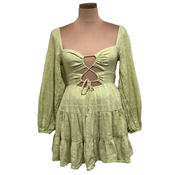 Princess Polly Campbell Cutout Corset Dress Size US 2 Pastel Green Puff Sleeve
