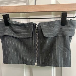 Princess Polly Charcoal pinstripe strapless crop top size 2. Like new! Love the suiting fabric. Zip up back. Sexy and fun.