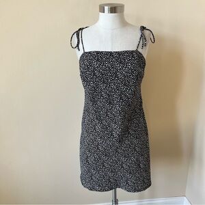 Super cute, mini slip dress with tights straps, and a mini polkadot pattern in black. Excellent preowned condition