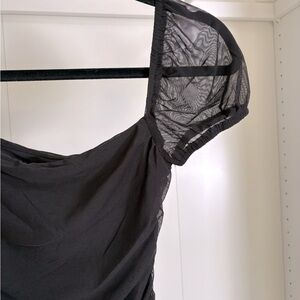 Chic black mini dress with mesh puff sleeves. Perfect for a night out. New without tag no flaws. Ptp 13” Length 32”