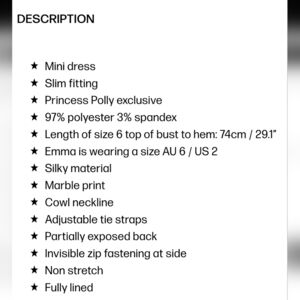 Princess Polly Cherish Mini Multi Swirl Tie Strap Cowl Neck Slip Dress Sz 2 NWT