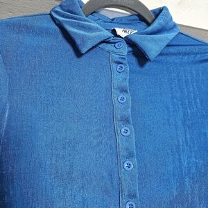 Princess Polly Claudia Long-sleeve Button-down Cropped Blue Shirt size 6