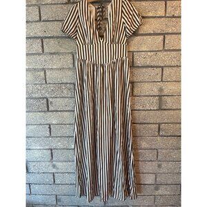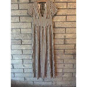Princess Polly Collyns Maxi Dress Beige Pinstripe Sz 6