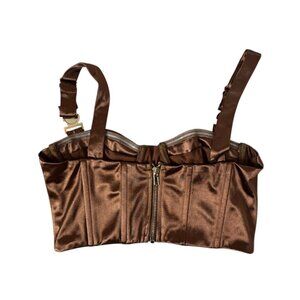 Princess Polly Corset Crop Top – Brown Satin Bustier Style Size 4 Gold Hardware