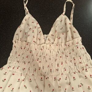 Charming cream mini dress with delicate floral design. Perfect for versatile styling.