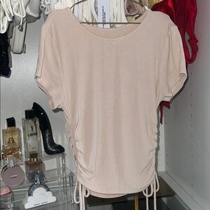 Stylish cream crop top with ruched sides. Perfect for casual outings.
