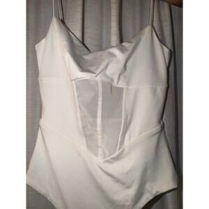 Princess Polly Cream White Mesh Strappy Camisole Bodysuit XS 0 One piece bridal