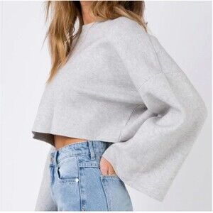 Princess Polly Crop Bell Sleeves Sweater Womens XS Gray Girl Soldier Relaxed